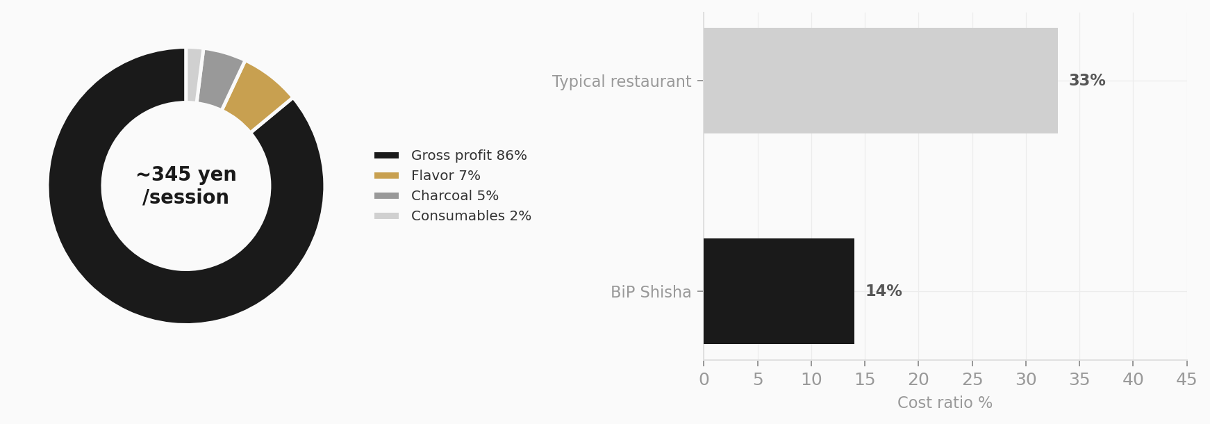 シーシャの原価率は15〜25%。飲食業で最も利益率が高い業態のひとつ。