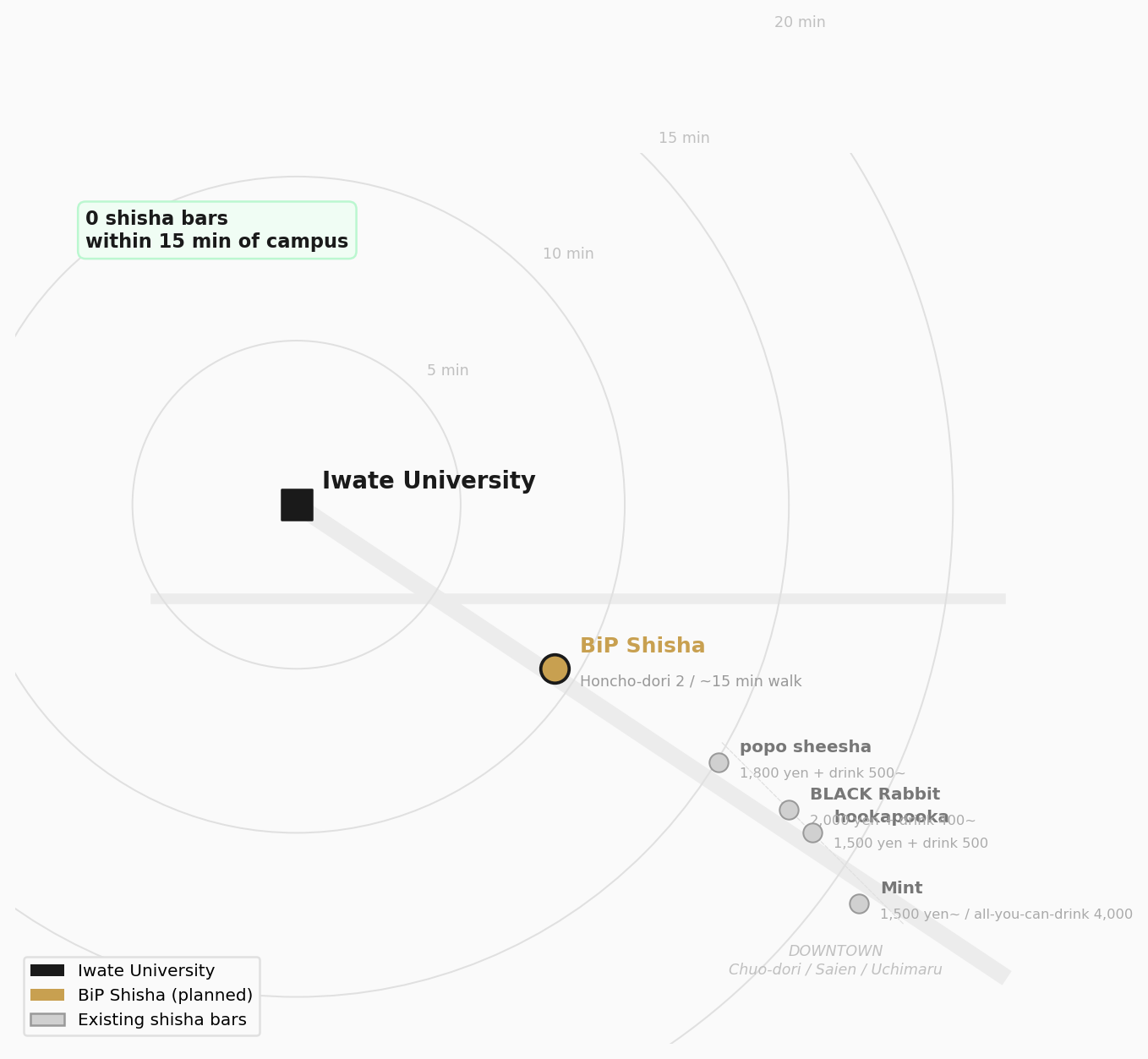 2026.3 — 「AIに仕事を奪われた」ため岩手に帰還。3年生として復学、シーシャ事業を構想開始