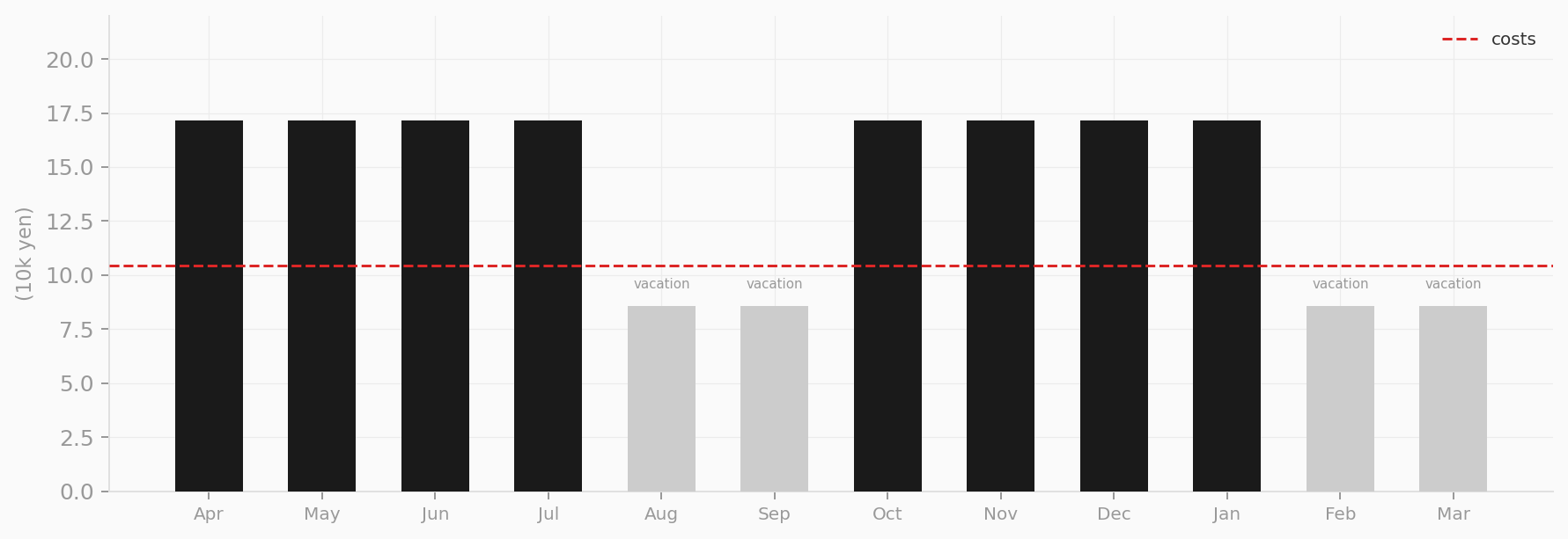 家賃6 + 光熱1.5 + 原価2 + 雑費1